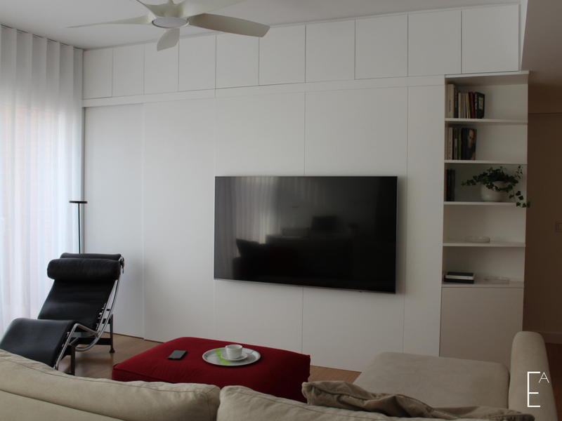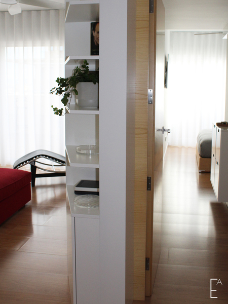 >>> El almacenAje se incrementA creando un armario a dos caras, salón y dormitorio.